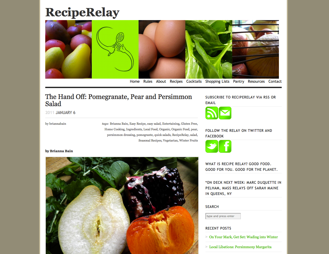 We are firm believers in sharing - especially when it comes to food - so it comes as no surprise that the story behind RecipeRelay.com pulls at our heartstrings. Two women from opposite sides of the U.S. meet at a Green MBA program and bond over their love of food. They create an online cookbook of sorts where they contribute, experiment with, and elaborate on recipes. And we all learn from their collective humility and ever-increasing experience as they remind us what good food is all about - seeking pleasure in preparing it and enjoying it together. Meet Sarah Maine and Brianna Bain (yes, we love that their names ryhme, too). Read more
