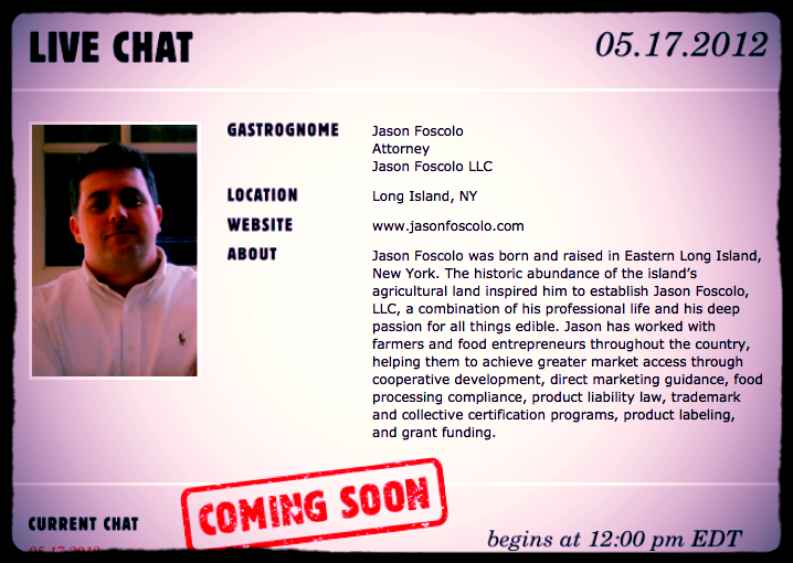 LIVE CHAT WITH FOOD LAWYER JASON FOSCOLO