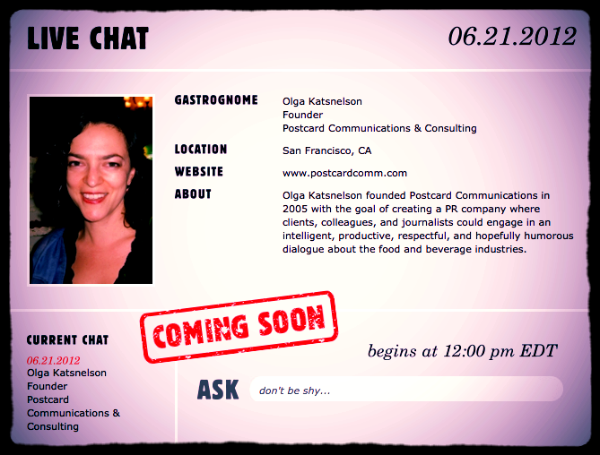 Do you want to work in Food PR? Olga brings over a decade of experience, and will have some incredible insight to your questions about finding / keeping work in the field.