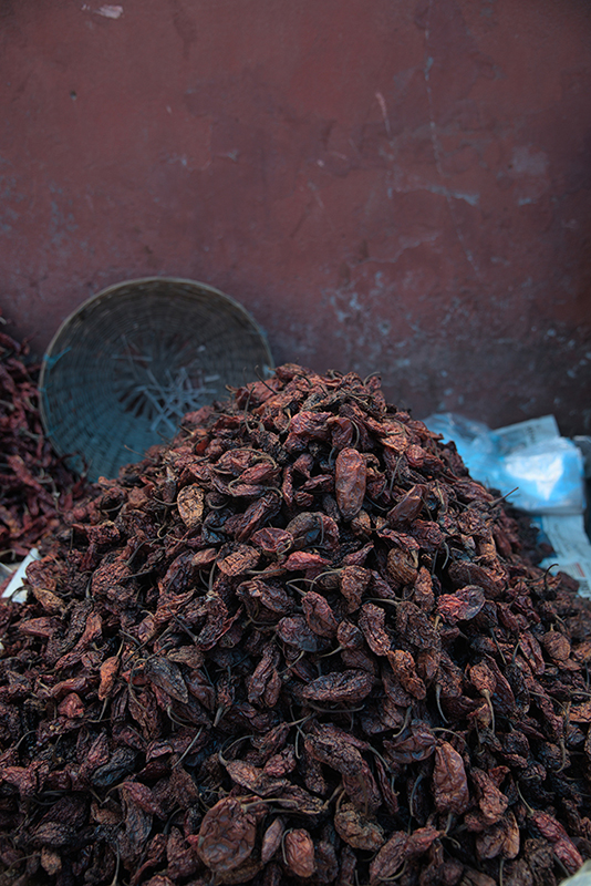 photo of dried Raja Mircha (aka Ghost Chili) piled high at Dimapur Market by Devraj Chaliha for GFJ Stories
