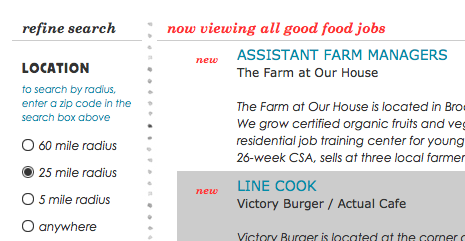 Good Food Jobs is a gastro-job search tool, designed to link people looking for meaningful food work with the businesses that need their energy, enthusiasm, and intellect. We post opportunities with farmers and food artisans, policy makers and purveyors, retailers and restaurateurs, economists, ecologists, and more.
