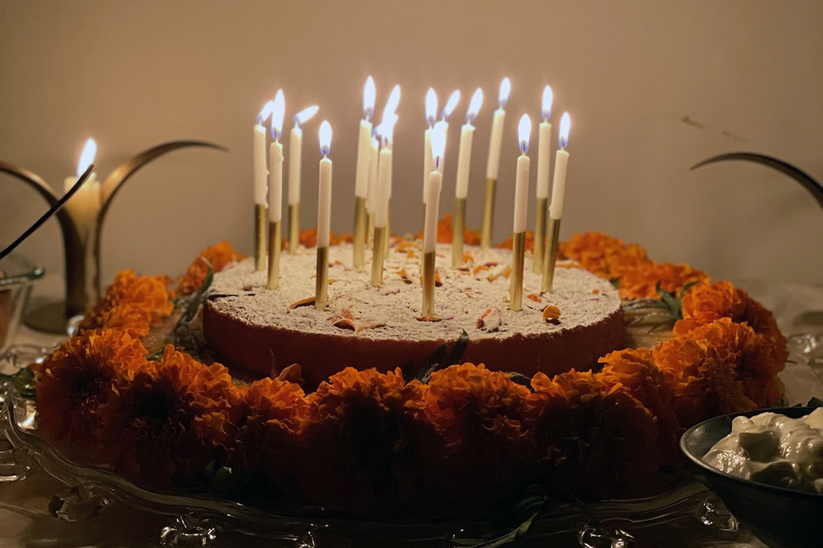 As a Scorpio sun, I seem to attract others born in the same celestial portal, so when my own friends surprised and delighted me with a most epic celebration of the Samhain season (complete with an ancestor altar, group singing, a space bathed in marigolds and candlelight, dance that honored my Greek heritage and the divine feminine, a potluck with the prompt to ‘bring something that would have delighted your ancestors,’ and a birthday cake made with Palestinian olive oil and topped with Greek yogurt and local honey, eaten with the plates and silverware passed down through Dorothy’s maternal line)...I felt the itch to honor the others around me in a similar fashion.