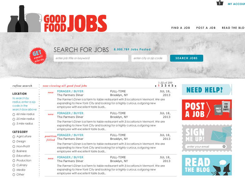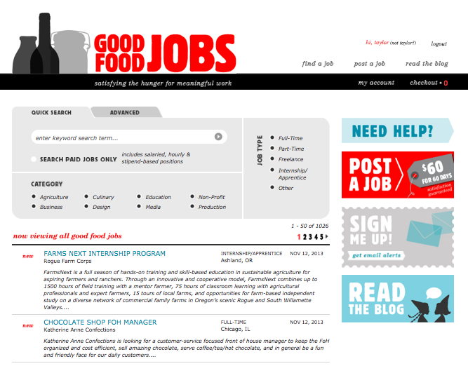 Good Food Jobs is a gastro-job search tool, designed to link people looking for meaningful food work with the businesses that need their energy, enthusiasm, and intellect. We post opportunities with farmers and food artisans, policy makers and purveyors, retailers and restaurateurs, economists, ecologists, and more.