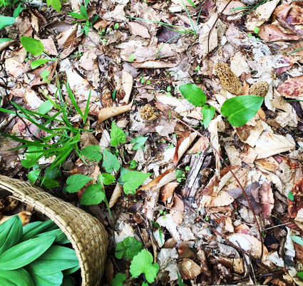 We spend an hour or two walking about and sharing our knowledge of the treasures that hide in plain sight. While the ramps led us there last year, one friend recently taught us how to identify nettles and knotweed. Another, wild mustard greens. And just yesterday, we decided to search for morels. Did we know we'd find them there? Nope. But we figured it was worth a try.